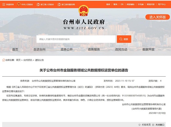 11月10日,臺(tái)州市政府與市金投集團(tuán)簽訂《公共數(shù)據(jù)授權(quán)運(yùn)營(yíng)協(xié)議》,標(biāo)志著市金投集團(tuán)成為臺(tái)州首家公共數(shù)據(jù)授權(quán)運(yùn)營(yíng)單位,依法開展科創(chuàng)、綠色和小微普惠場(chǎng)景公共數(shù)據(jù)授權(quán)運(yùn)營(yíng)活動(dòng)。