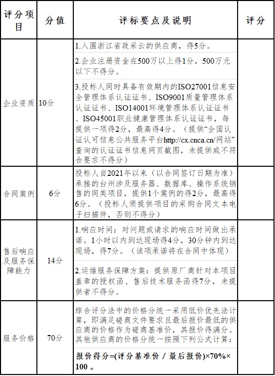 綜合比選。評分標(biāo)準(zhǔn)見下表:
